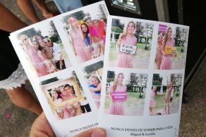 As fotos são impressas em apenas alguns segundos e distribuídas por todos os convidados.